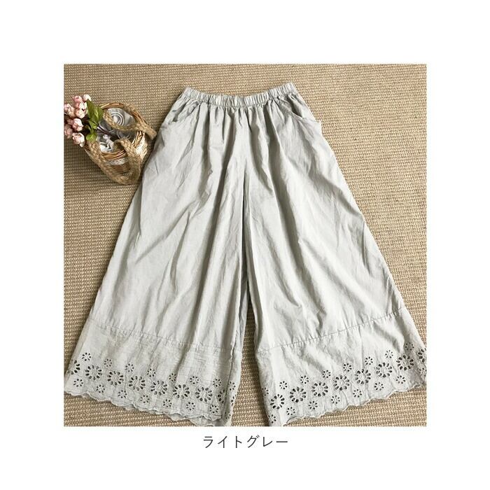 ・体のラインを拾いにくいワイドパンツ。気になる太ももまわりなどもカバーできちゃうのが、嬉しいポイント◎