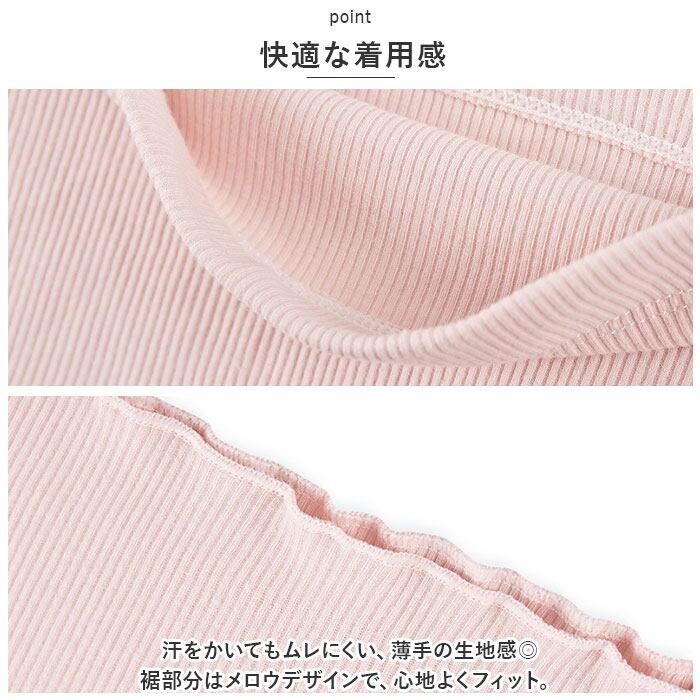 ・汗をかいてもムレにくい、薄手の生地感◎裾部分はメロウデザインで、心地よくフィット。