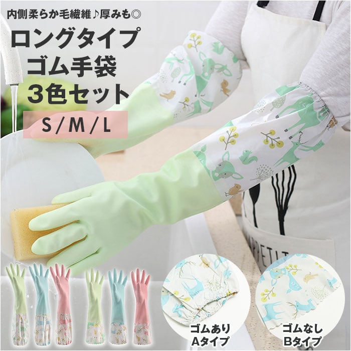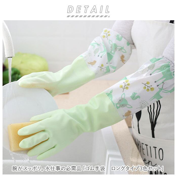 ゴム手袋 ロング 通販 3枚セット 作業用 ロンググローブ ロングスリーブ 丈が長い 食器洗い 掃除 クリーニング そうじ トイレ 風呂 浴室 キッチン かわいい おしゃれ