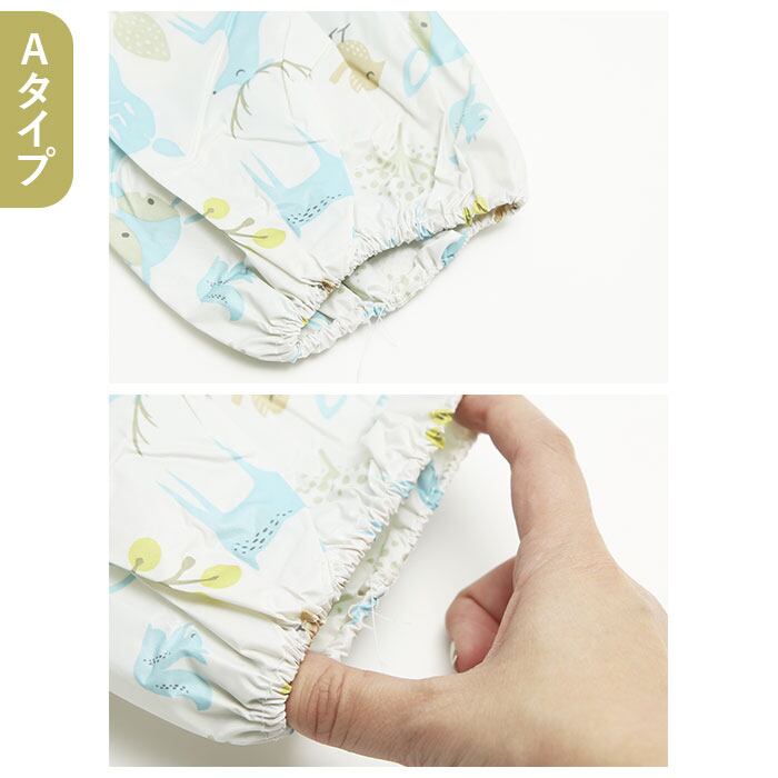 ・袖口がゴム入りでズリ落ちの心配がないAタイプと、袖口が広く着脱楽チンなBタイプを展開。