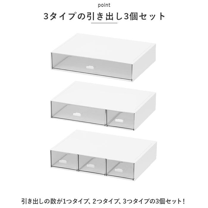 ・引き出しの数が1つタイプ、2つタイプ、3つタイプの3個セット!