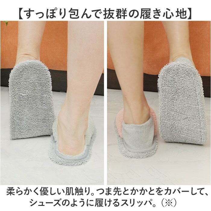 ・柔らかく優しい肌触り。つま先とかかとをカバーして、シューズのように履けるスリッパ。