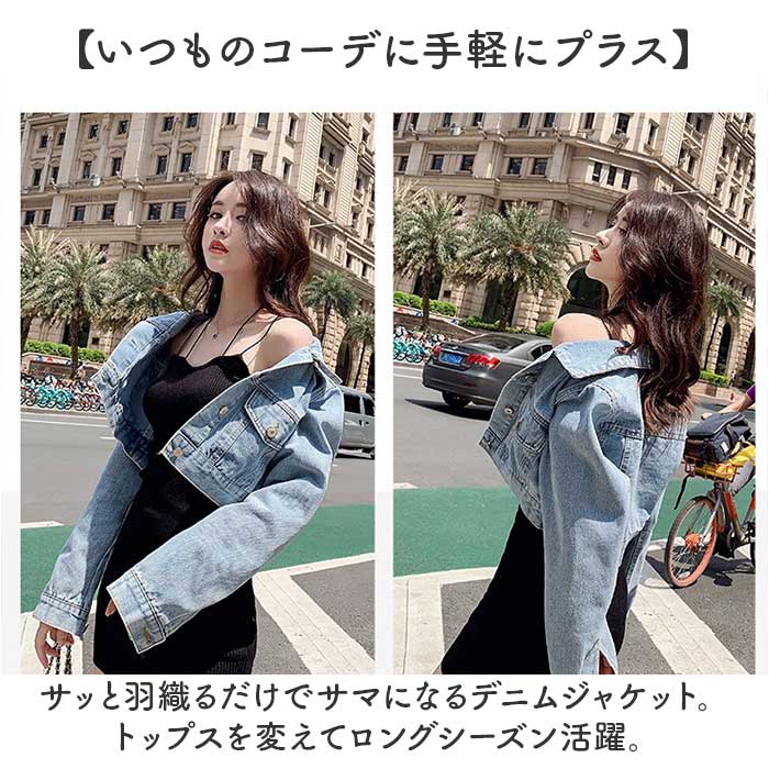・サッと羽織るだけでサマになるデニムジャケット。トップスを変えてロングシーズン活躍。