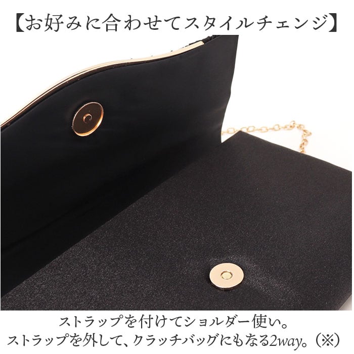 ・ご祝儀袋がすっぽり。薄手のハンカチやスマホ、ミニ財布などをIN、便利な内ポケット付き。