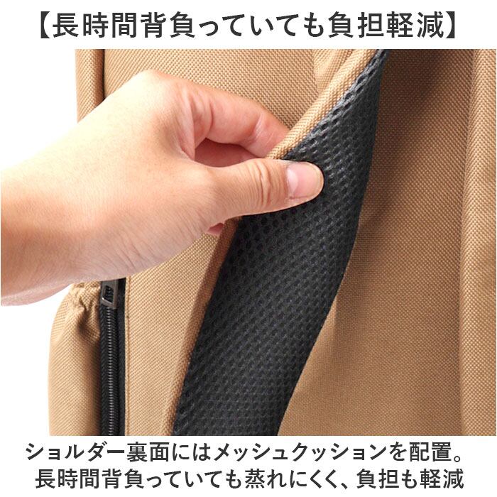 ・ショルダー裏面にはメッシュクッションを配置。長時間背負っていても蒸れにくく、負担も軽減