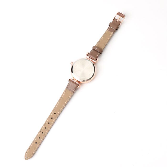 ・文字盤には人工石のビジューを配置。女性が喜ぶキラキラが詰め込まれたアイテム。