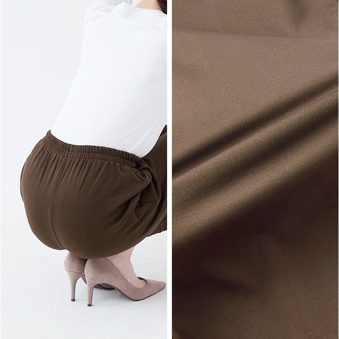 ・締め付けのないウエスト総ゴム仕様。スッと足入れできて、着脱もスムーズ。