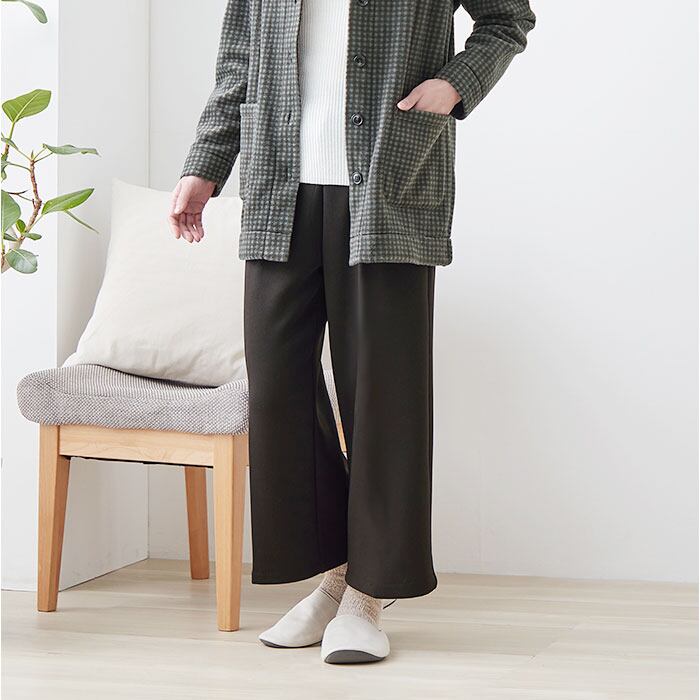 ・上品な仕上がりで、冷える足元もあったか♪「ゆったり暖か裏シャギーワイドパンツ」。
