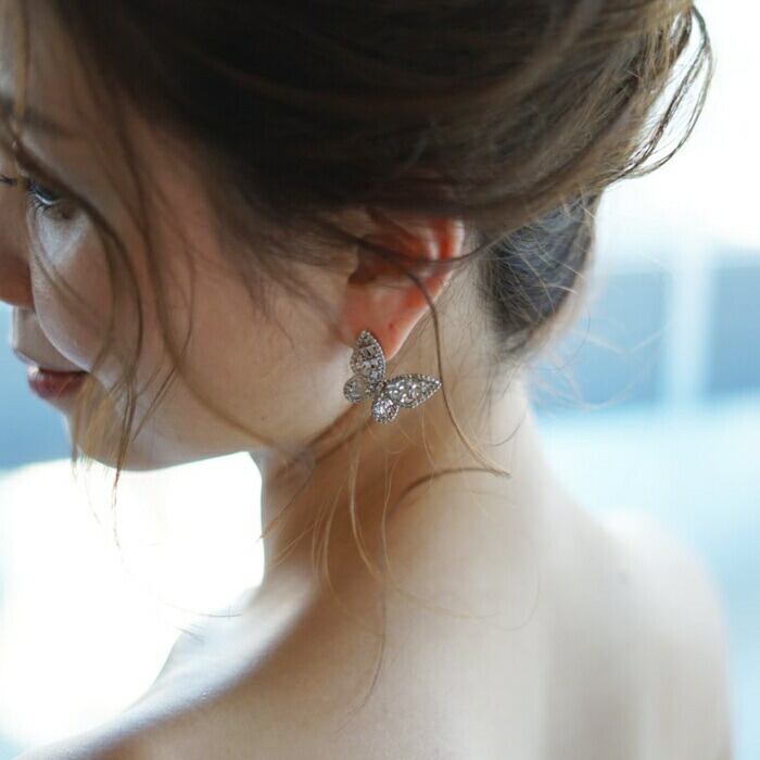・繊細にセッティングされた、キュービックジルコニアがキラキラと輝くバタフライモチーフのピアス