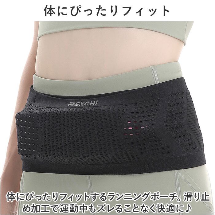 ・体にぴったりフィットするランニングポーチ。滑り止め加工で運動中もズレることなく快適に♪