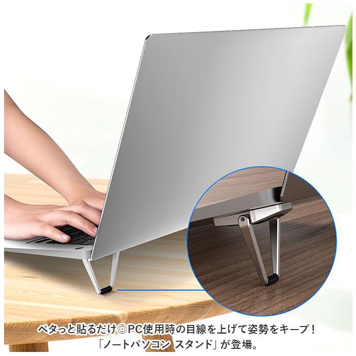・ペタっと貼るだけ◎PC使用時の目線を上げて姿勢をキープ!「ノートパソコン スタンド」が登場。