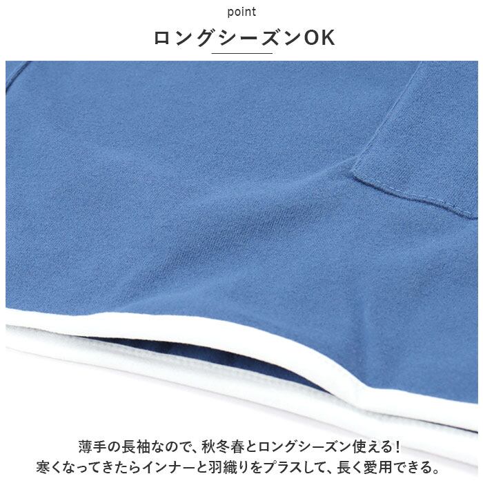 ・薄手の長袖なので、秋冬春とロングシーズン使える!寒くなってきたらインナーと羽織りをプラスして、長く愛用できる。