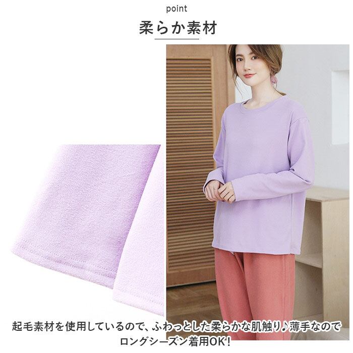 ・起毛素材を使用しているので、ふわっとした柔らかな肌触り♪薄手なのでロングシーズン着用OK!