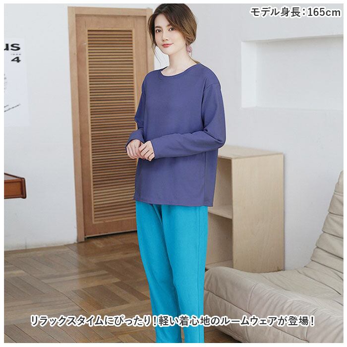 ルームウェア レディース 長袖 通販 長ズボン ズボン Tシャツ シャツ パジャマ ナイトウェア 部屋着 室内着 屋外 春 秋 上下セット 上下 かわいい カジュアル おしゃれ