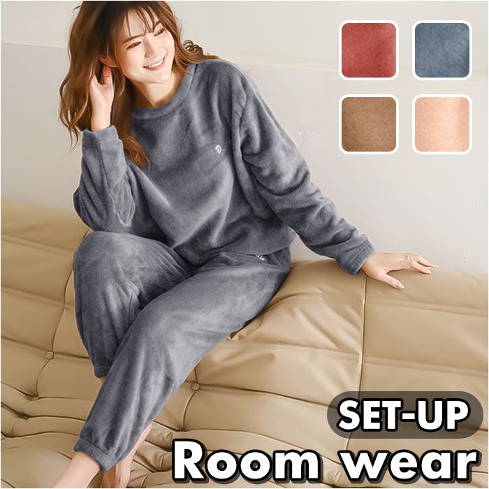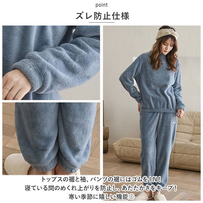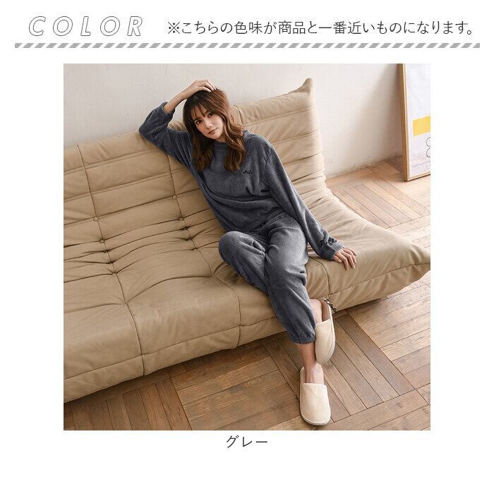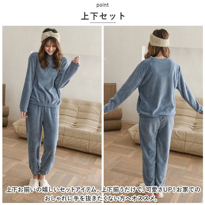 ・もこもこ素材が嬉しい、上下セットのルームウエア。寒い季節もホッとするあたたかさで、全身を包み込んでくれる♪