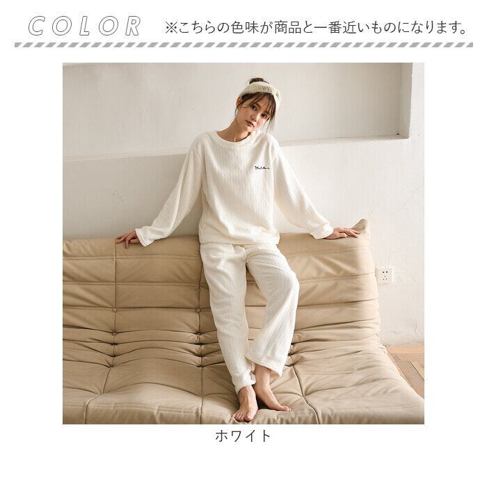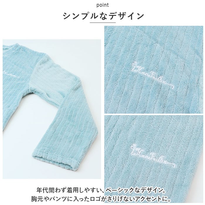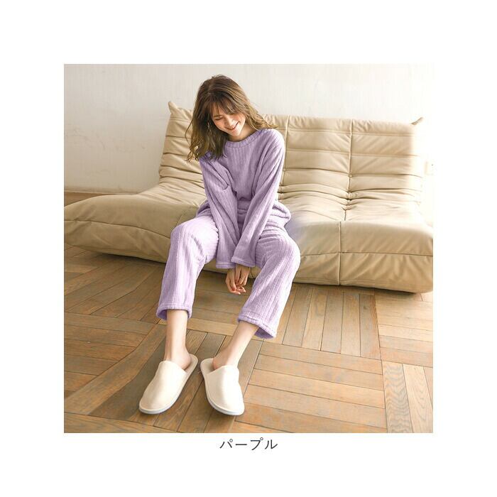 ・上から被るだけのクルーネック&ウエストゴム仕様のパンツ。着脱もラクラク!