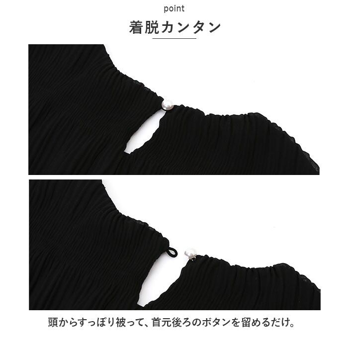 ・頭からすっぽり被って、首元後ろのボタンを留めるだけ。