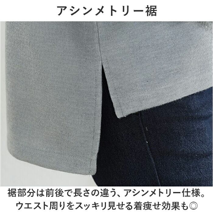 ・裾部分は前後で長さの違う、アシンメトリー仕様。ウエスト周りをスッキリ見せてくれるので着痩せ効果も◎