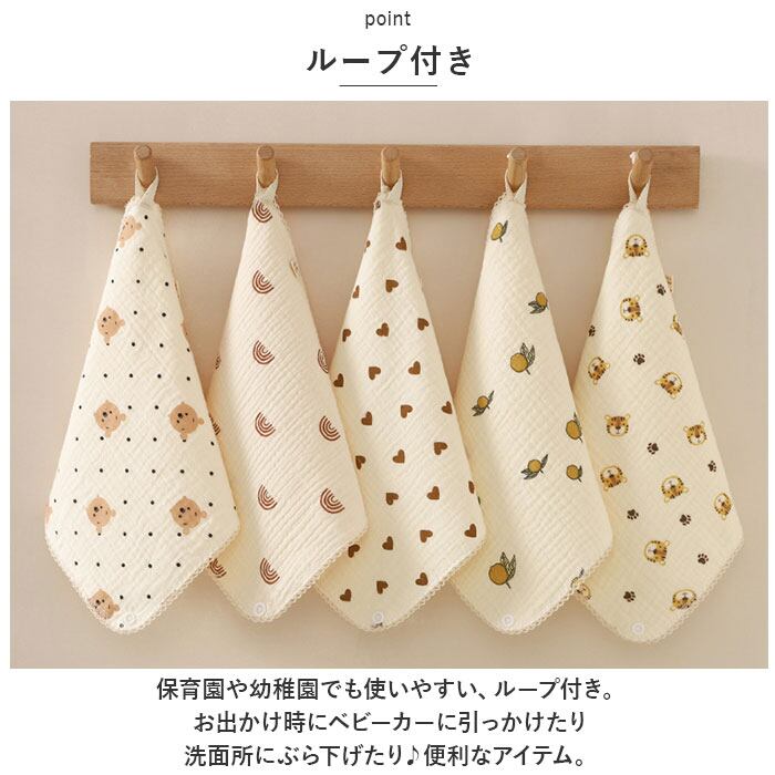 ガーゼハンカチ 赤ちゃん 通販 3枚セット ループタオル ループ付きタオル スタイ ガーゼ 綿 よだれかけ ボタン付き ハンドタオル 女の子 男の子 薄手 速乾 新生児 おしゃれ かわいい ギフト 誕生日 出産祝い キッズ ベビー