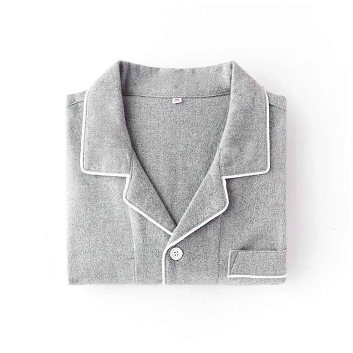 ・スムーズに脱ぎ着できるフロントボタンタイプ。襟元が程よく開いて、心地よい睡眠やお家時間をサポート♪左胸元にポケット付き。