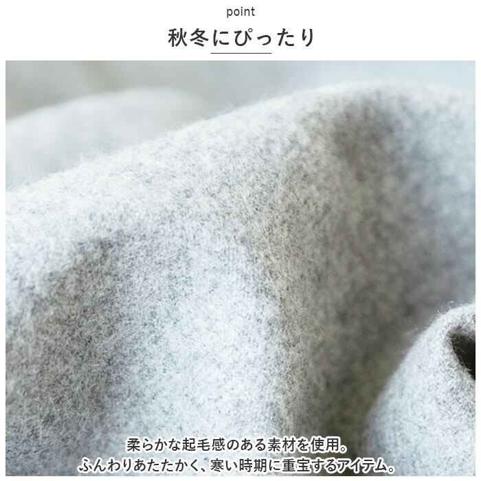 ・柔らかな起毛感のある素材を使用。ふんわりあたたかく、寒い時期に重宝するアイテム。