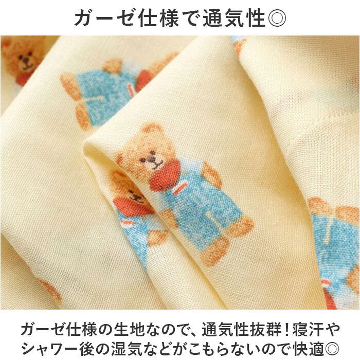 ・ガーゼ仕様の生地なので、通気性抜群!寝汗やシャワー後の湿気などがこもらないので快適◎