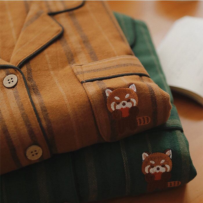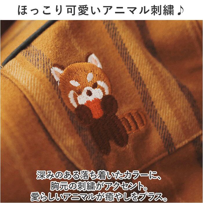 ・深みのある落ち着いたカラーに、胸元の刺繍がアクセント。愛らしいアニマルが癒やしをプラス。