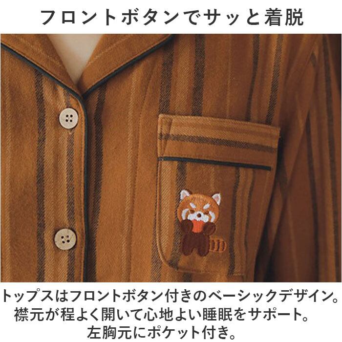 ・トップスはフロントボタン付きのベーシックデザイン。襟元が程よく開いて心地よい睡眠をサポート。左胸元にポケット付き。