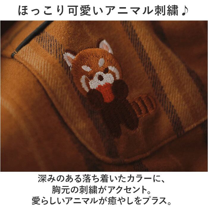 ・深みのある落ち着いたカラーに、胸元の刺繍がアクセント。愛らしいアニマルが癒やしをプラス。