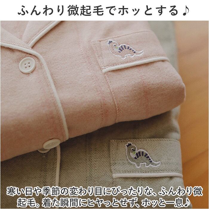 ・コットンの風合いが優しくナチュラル。可愛い恐竜の刺繍で、お家時間もほっこり癒される♪