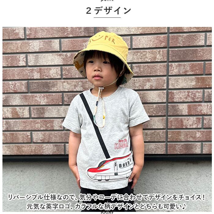 ・リバーシブル仕様!元気な英字ロゴと可愛い柄デザインの2デザインが楽しめる♪「kids リバーシブルバケットハット」が登場!