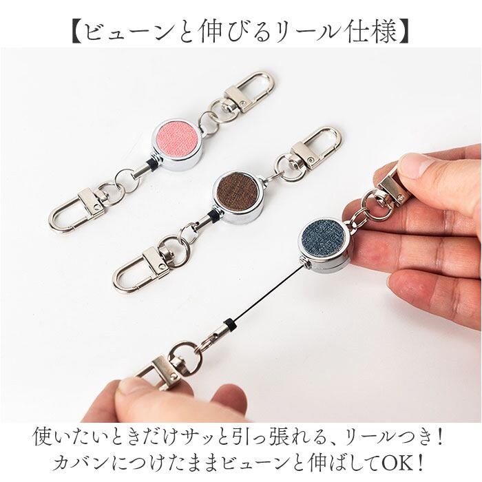 ・使いたいときだけサッと引っ張れる、リールつき!カバンにつけたままビューンと伸ばしてOK!