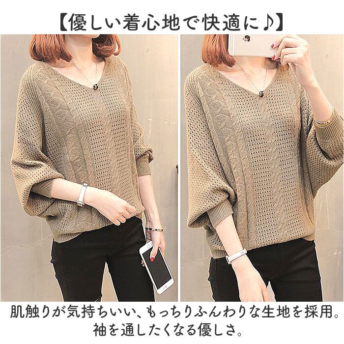 ・体型カバーを叶える、ドルマン&バルーン袖「Vネックニットトップス」が登場。