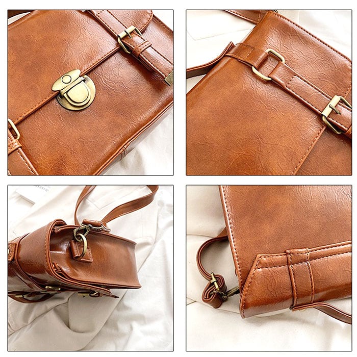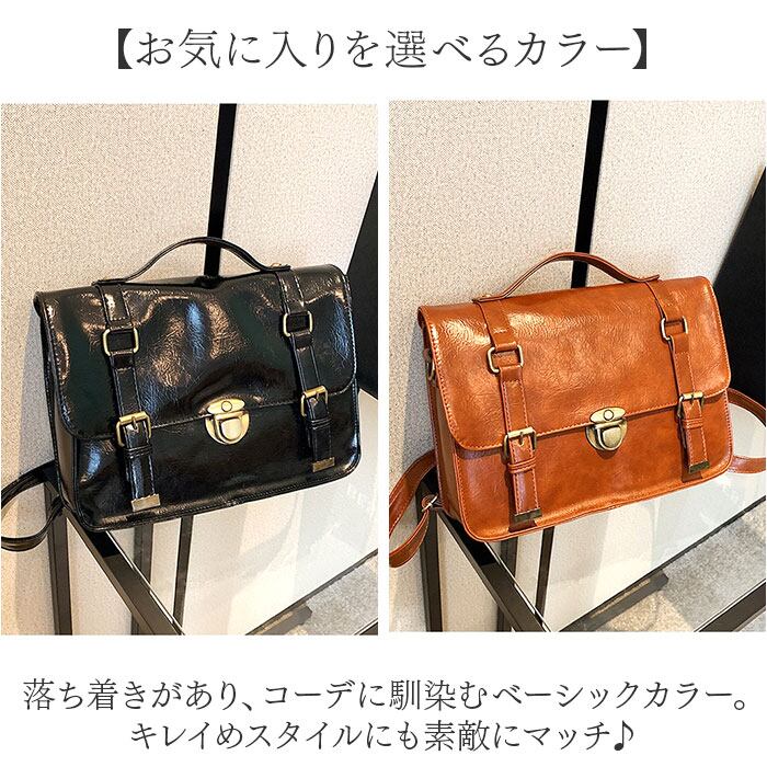・ベルトデザインを取り入れた、学生かばん風デザイン。洗練された印象のトラッドスタイルに。