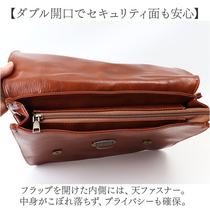 ・フラップを開けた内側には、天ファスナー。中身がこぼれ落ちず、プライバシーも確保。