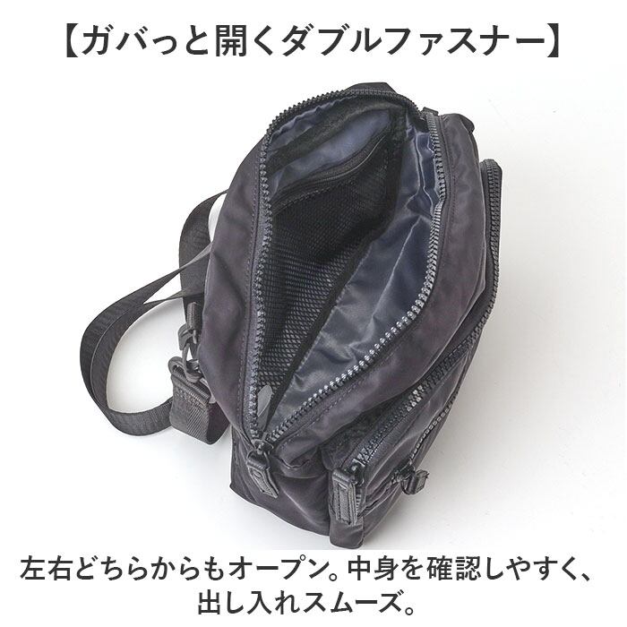 ・体に負担がかかりにくい軽量設計。表面は耐久性の高いナイロン仕上げで、ラフに使えるバッグ。