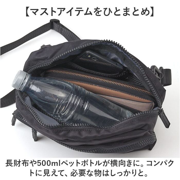 ・長財布や500mlペットボトルが横向きに。コンパクトに見えて、必要な物はしっかりと。