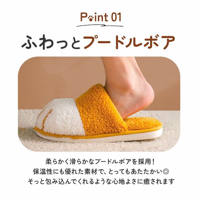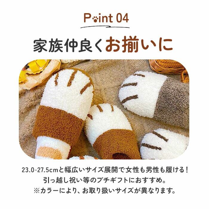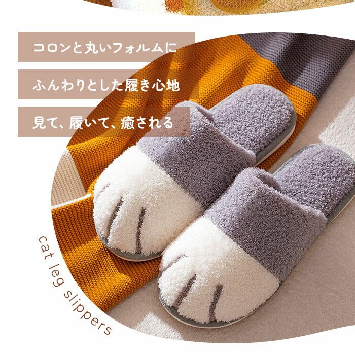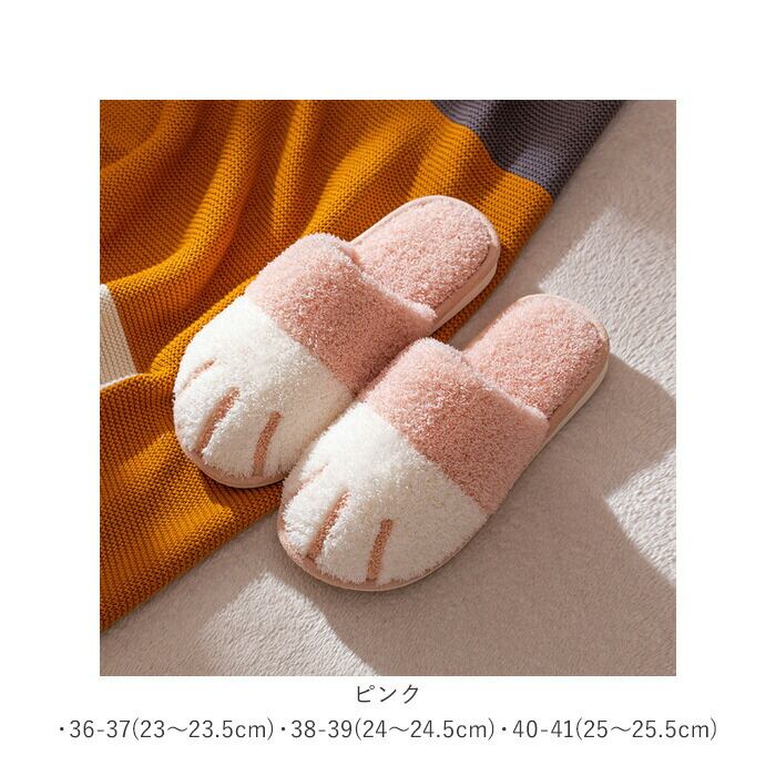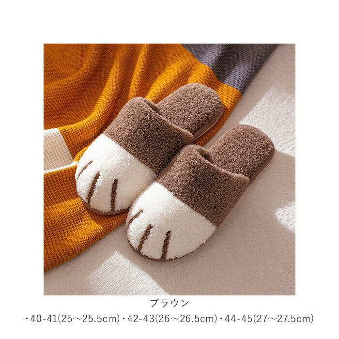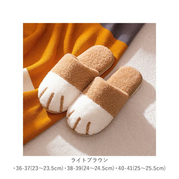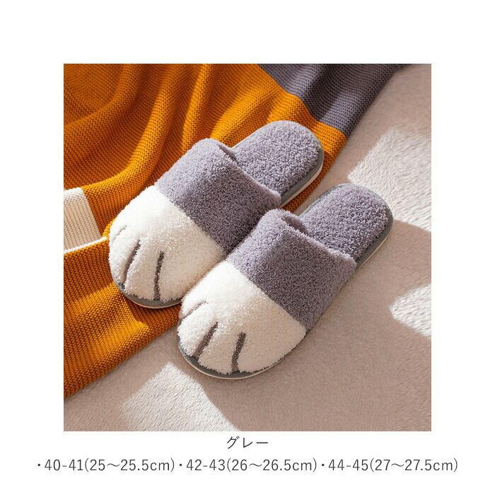 ・コロンと丸いネコの手のカタチで、つま先全体を包みこむようにカバー。履くだけでほっこり可愛い足元に変身できるユニークなスリッパ。