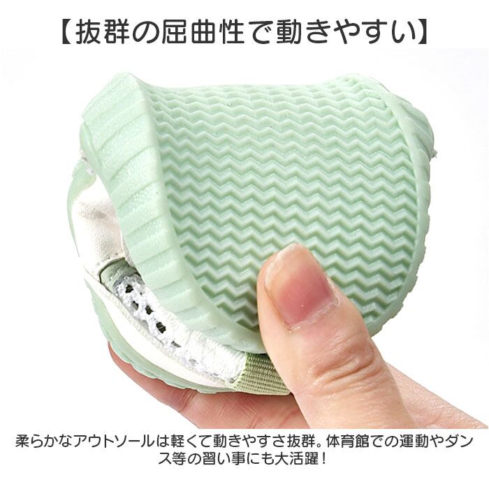・柔らかなアウトソールは軽くて動きやすさ抜群。体育館での運動やダンス等の習い事にも大活躍!