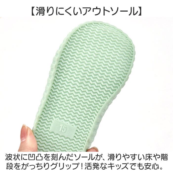 ・波状に凹凸を刻んだソールが、滑りやすい床や階段をがっちりグリップ!活発なキッズでも安心。