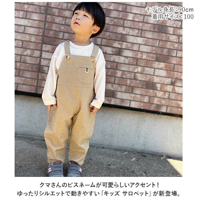 ・クマさんのピスネームが可愛らしいアクセント!ゆったりシルエットで動きやすい「キッズ サロペット」が新登場。