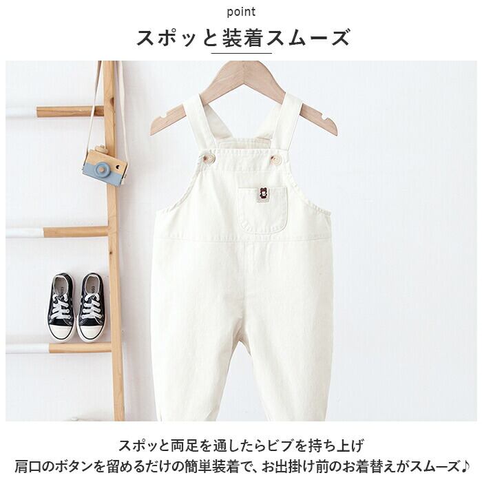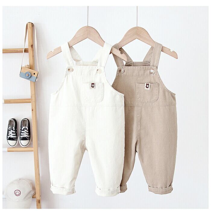 ・シンプルなトップスと合わせるだけで、すぐにお出掛けスタイルが完成!男の子にも女の子にも似合う、ノスタルジックなオフホワイト&ブラウンのカラーバリエーション。