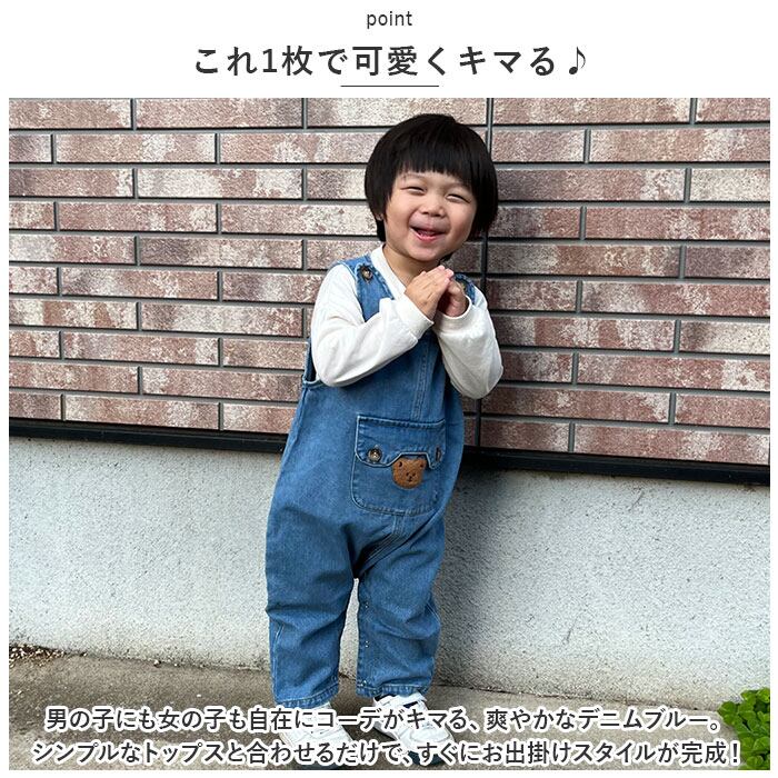 ・男の子にも女の子も自在にコーデがキマる、爽やかなデニムブルー。シンプルなトップスと合わせるだけで、すぐにお出掛けスタイルが完成!