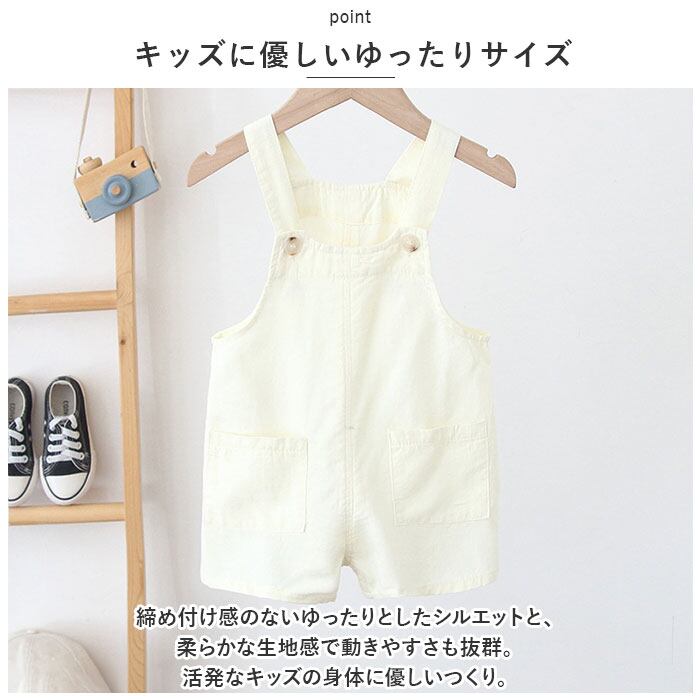 ・サラッと軽い生地感でオールシーズン快適♪ゆったりシルエットが可愛らしい「キッズオーバーオール」が新登場。