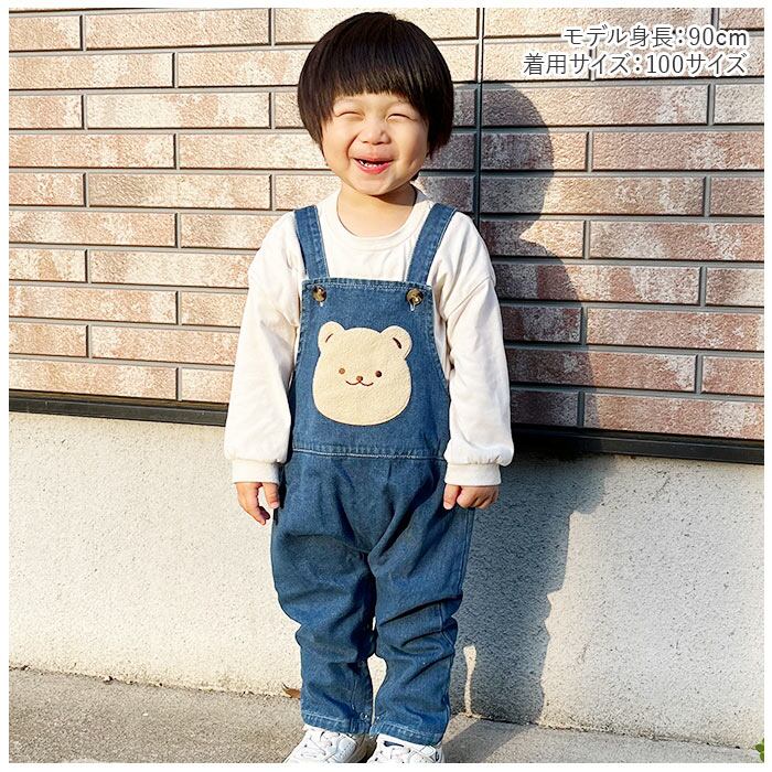 ・胸元の大きなクマさんスマイルがキュート♪ゆったりシルエットで動きやすい「キッズオーバーオール」が新登場。