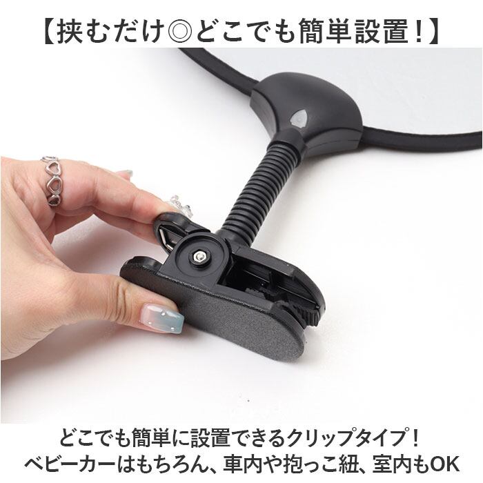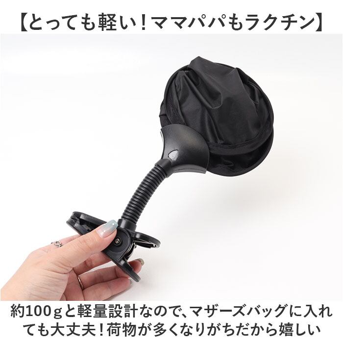 ・どこでも簡単に設置できるクリップタイプ!ベビーカーはもちろん、車内や抱っこ紐、室内もOK