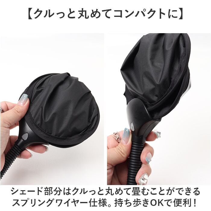 ・シェード部分はクルっと丸めて畳むことができるスプリングワイヤー仕様。持ち歩きOKで便利!