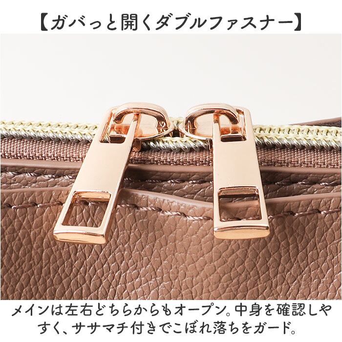 ・メインは左右どちらからもオープン。中身を確認しやすく、ササマチ付きでこぼれ落ちをガード。