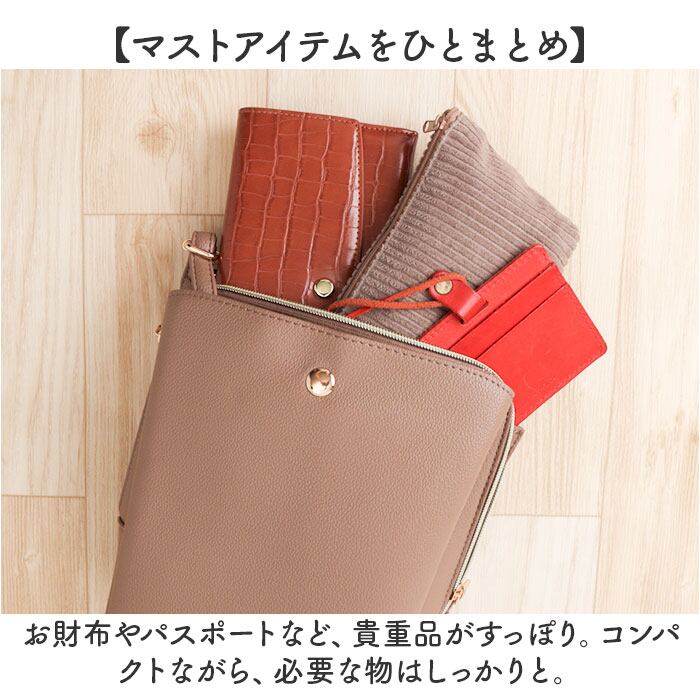 ・お財布やパスポートなど、貴重品がすっぽり。コンパクトながら、必要な物はしっかりと。