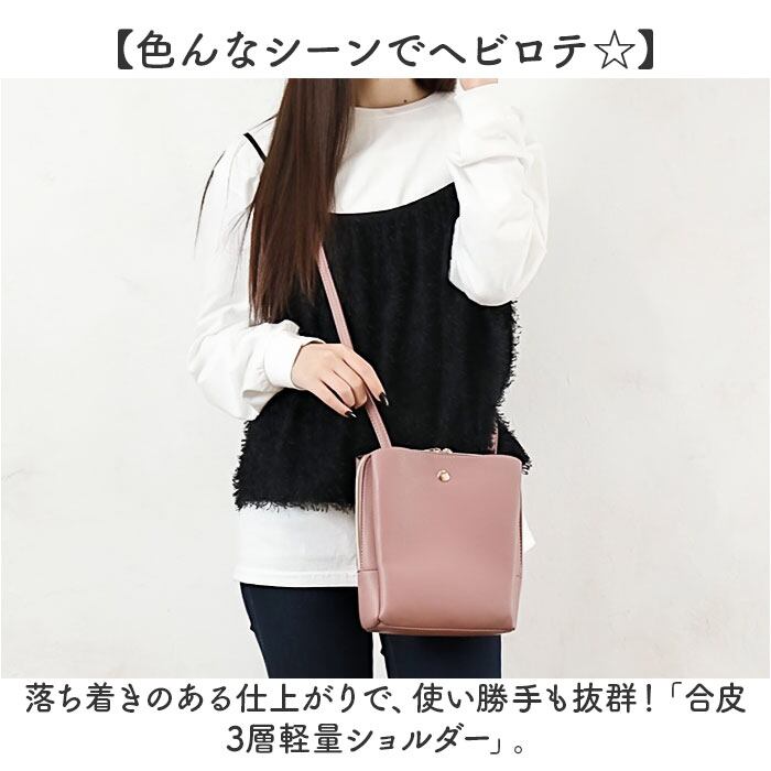 ・落ち着きのある仕上がりで、使い勝手も抜群!「合皮3層軽量ショルダー」。